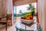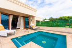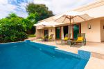 Single storey 3-bedroom villa, aesthetically modern with beautifully designed rooms and living area. On one side of the large living room you have direct access to a wide terrace with two swimming pools, and on the other there is veranda with views of the surrounding tropical greenery.
