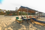 The beach is wide, smooth and not so much crowded; the sand is of the dark color. The swimming is safely.