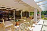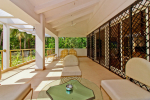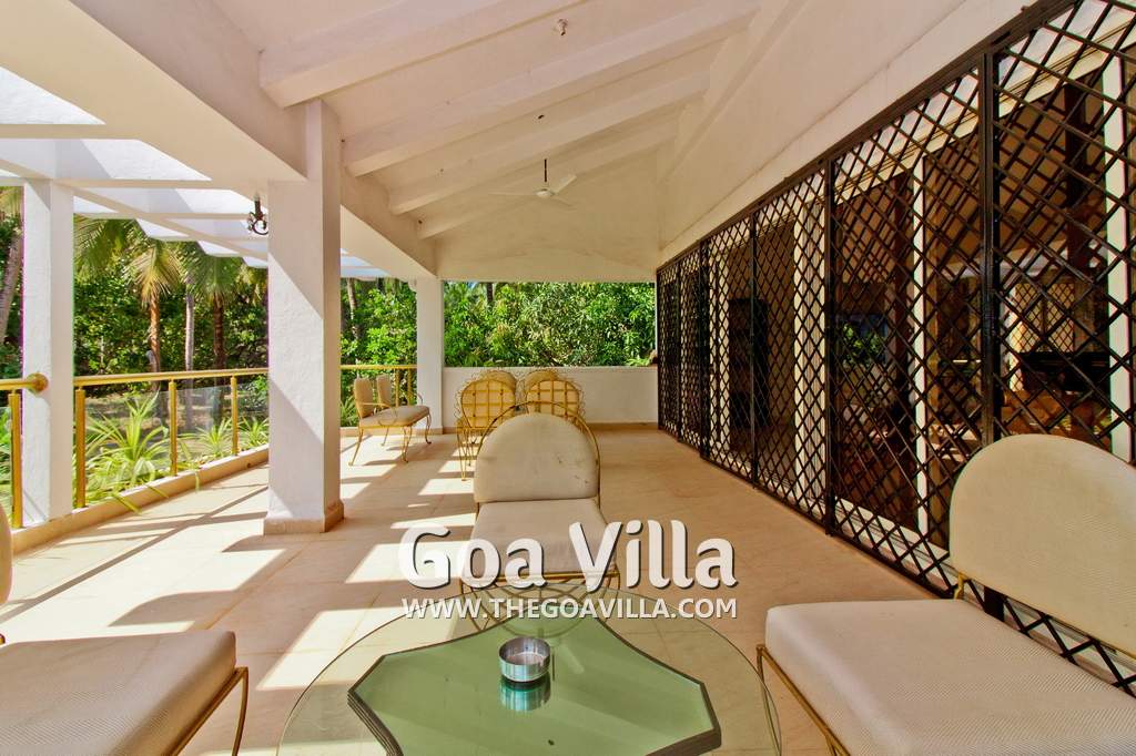 Balcony – Huge outdoor balcony leading from the living room and overlooking the private swimming pool. Sofa, chairs, glass top center table.