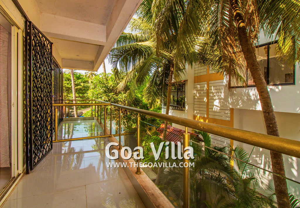 Baga villa is a 5-bedroom luxury goa villa for rent at Baga in North Goa. It is 1.2 kilometers from the famous Baga beach. This is a laid-back holiday home with modern architecture, a large balcony overlooking the private swimming pool. Large bedrooms with modern Indian furniture. Living room, kitchen, dining area. Luxury services.