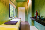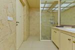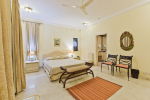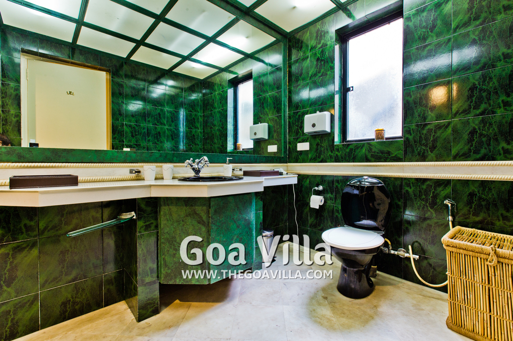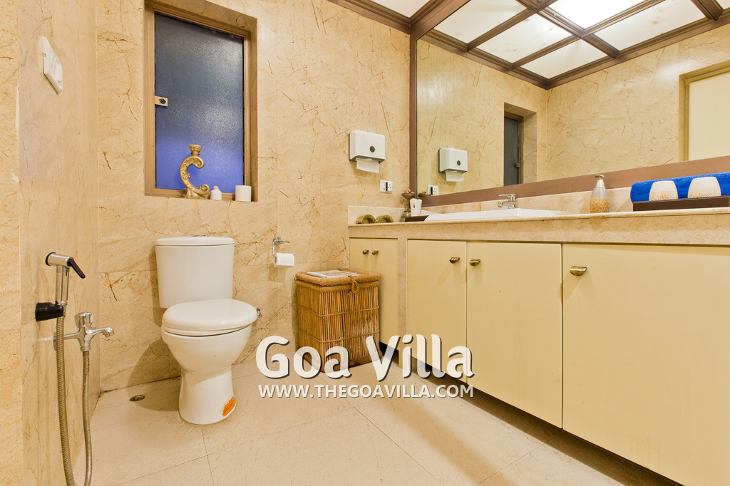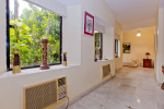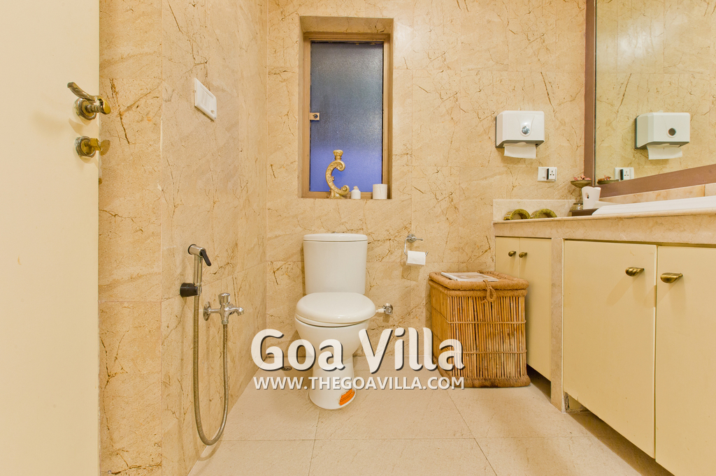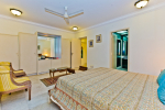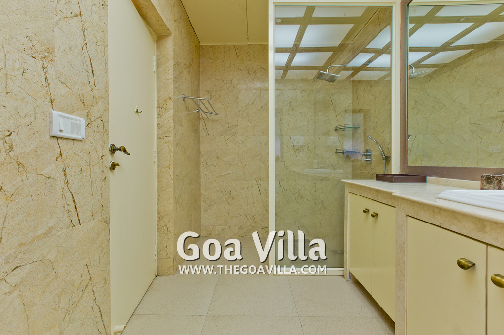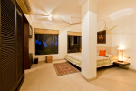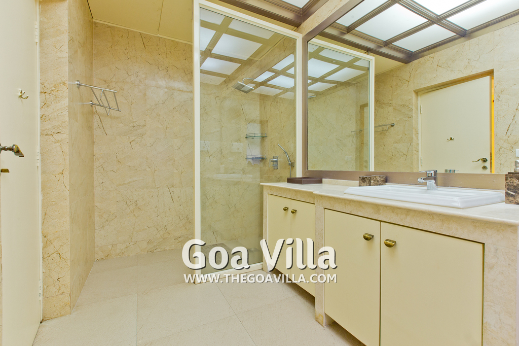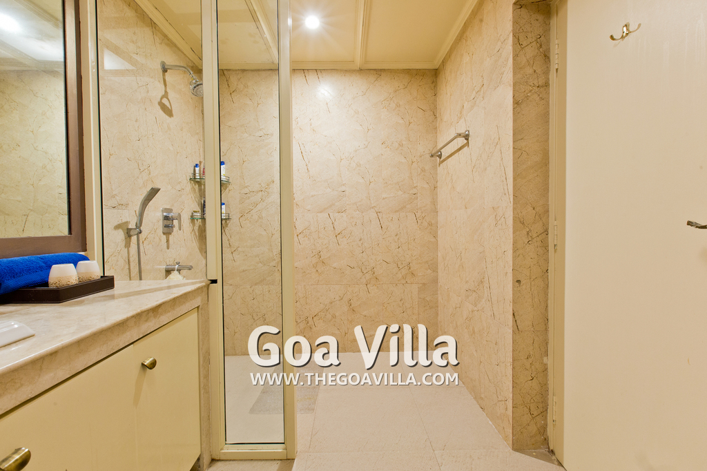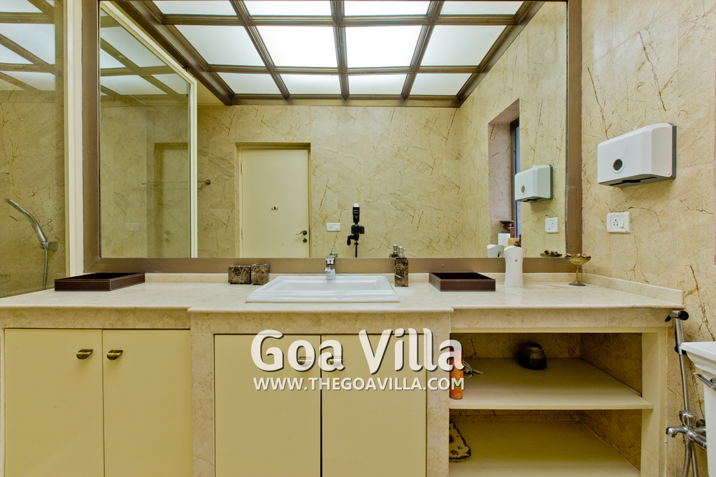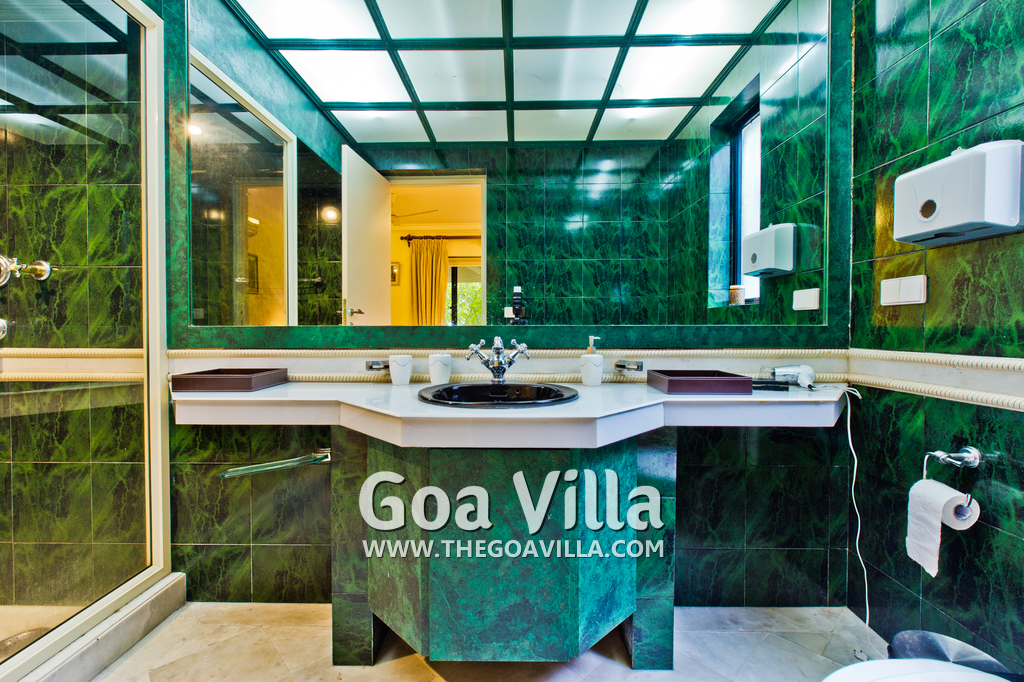 Bedrooms – The villa has 6 bedrooms, all en-suite and air conditioned. They are large and airy with a king bed, side table, beautiful lamp shades, wardrobe, sitting area, carpet, and paintings. The master suite has a small library. Each bedroom has a satellite television, mini bar, tea and coffee making facilities. Large glass windows provide nature views and views of the Zuari river’s estuary.