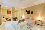 A Goa vacation was never more luxurious. Eva Villa is a 6-bedroom luxury estate in North Goa’s Dona Paula. Located at the confluence of the Zuari River and the Arabian Sea, this Portuguese-style mansion offers modern luxuries and comforts with complete privacy. Lavishly decorated, this chic villa for rent has a private swimming pool, outdoor Jacuzzi, airy and spacious bedrooms, terrace patios, lounge areas, manicured lawn, and tropical garden. Artifacts from around world decorate the indoors. Spend your Goa days relaxing in this stunning property beside the sea.