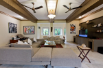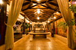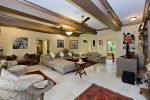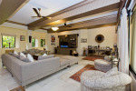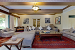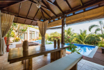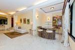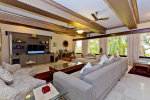 Living Room – Eva Villa has a huge ground-floor living room, just the right place for guests to spend time socializing. There is a large sofa, center table, carpet, and beautiful floor-standing lamp shades. This room is also air-conditioned. Flat-screen television. There is a small bar at one corner. Second living area in the upper level.