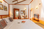 Bedrooms – The 3 en-suite bedrooms each have distinct personalities. They are all air-conditioned. Large comfortable beds with extra cushions, side table, separate sitting area, carpet, study table, and wardrobe. Antique furniture adds a special charm. High ceiling bedrooms with large windows allow wind to flow easily.