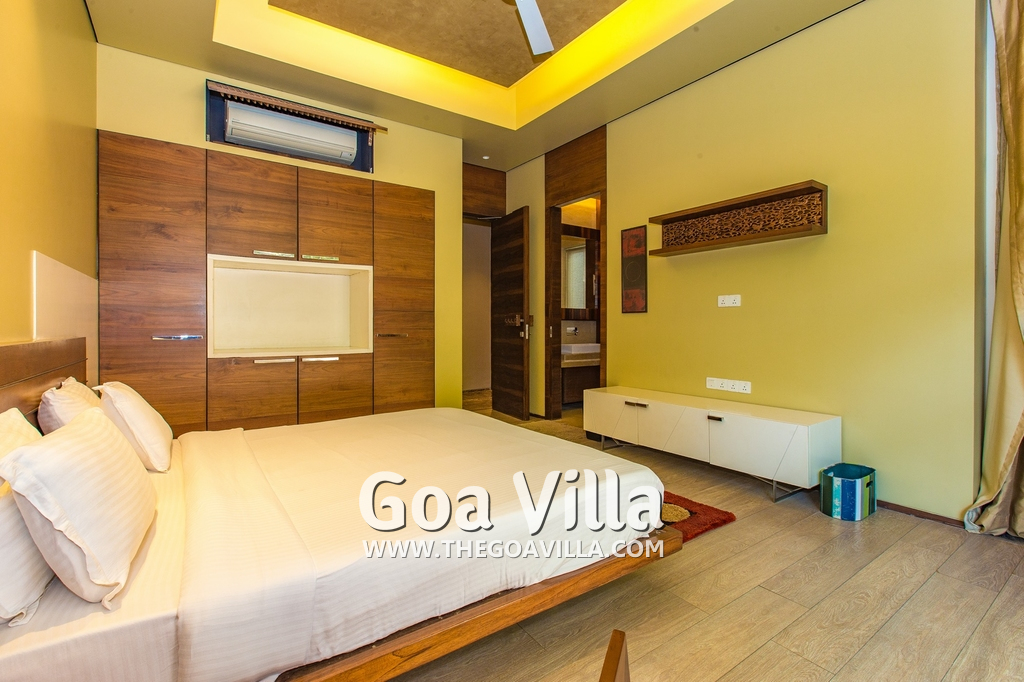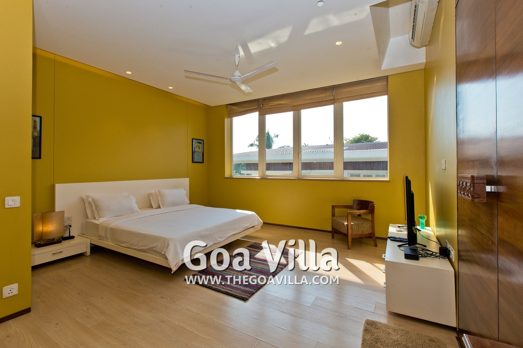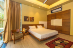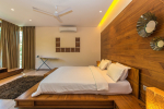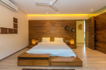 A private estate nestled at the base of a hill in a village, Hansa Villa is a spectacular luxury property at Arpora in North Goa. The villa consists of 4 bedrooms, accommodating up to 8 guests. All the bedrooms are fully furnished and en-suite. The interiors are modern. The large sliding doors and windows provide stunning views of the beautiful natural surroundings. This villa for rent has a private swimming pool, living room, fully equipped kitchen, modern amenities and comforts.