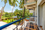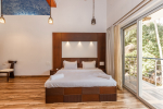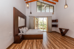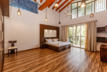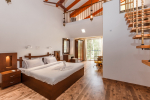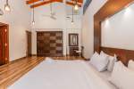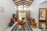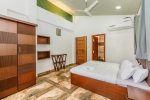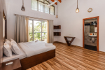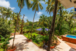 This 6-bedroom villa is located at the center of Morjim, close to the Morjim and Ashwem beach, and the Chapora River. It is a countryside home that blends perfectly with the surrounding rural landscape that has tall trees, villages, and agriculture fields. Serene and green neighborhood. Green views from the balconies.