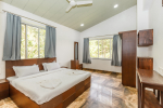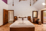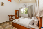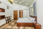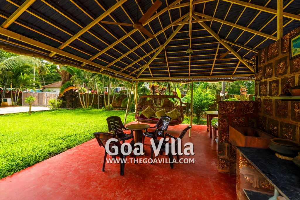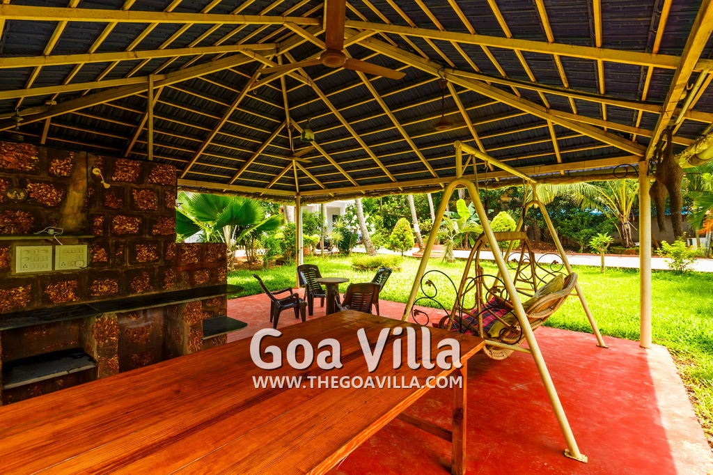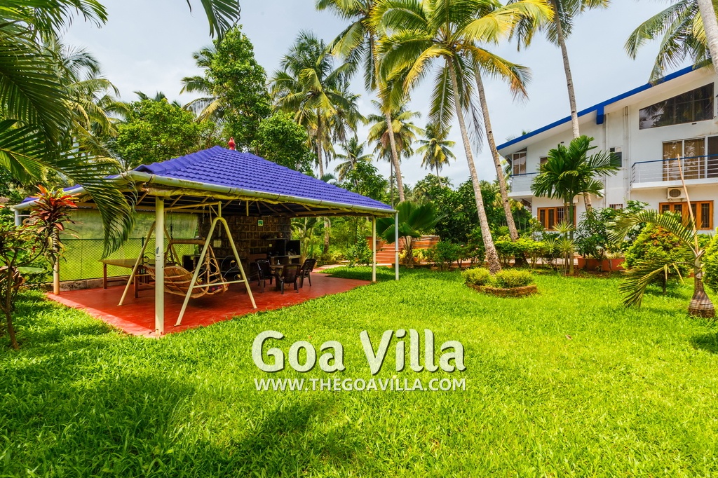 Morjim Holiday Villa has 6 bedrooms, all air-conditioned and en-suite. Beautiful lawn outside with an area for outdoor barbecues. There is a gazebo with rockers where guests can relax. This country home is elegant, and offers all luxuries for a relaxing Goa holiday.
