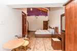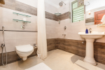 Bedrooms – There are 6 en-suite and air-conditioned bedrooms in this villa. They are categorized into Sapphire and Saffron. Sapphire has an Adriatic theme with a color scheme that matches the sea water. There is a queen bed with a separate mattress, side tables, mirror, and wardrobe. Saffron has warm, earthly shades. The bedrooms have sunlit windows, balcony overlooking greenery with seating, and tall ceiling that keeps the rooms cool even in the peak summer.