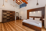 Morjim Holiday Villa is a spacious vacation home at Morjim in North Goa for families and groups. This is a 6-bedroom villa with a European façade and modern interiors. The bedrooms are distinct with Adriatic theme and earthly shades. The villa has a landscaped lawn with beautiful lighting for romantic evenings, gazebo, rockers, outdoor barbecue facilities, and personal chef and butler services. There is a fully equipped modular kitchen and living room with pottery and artifacts.