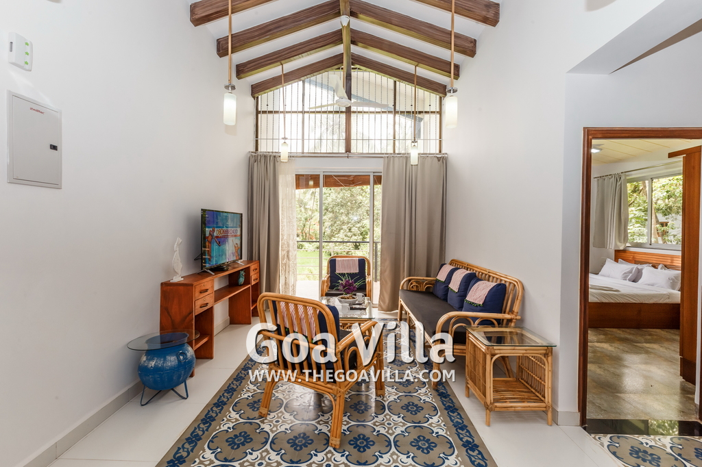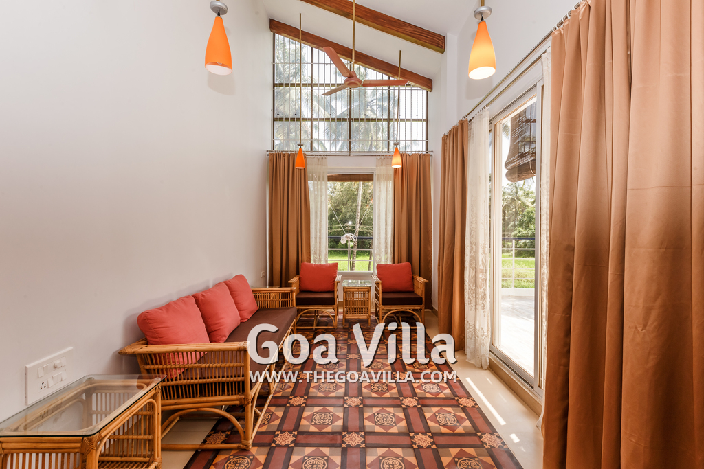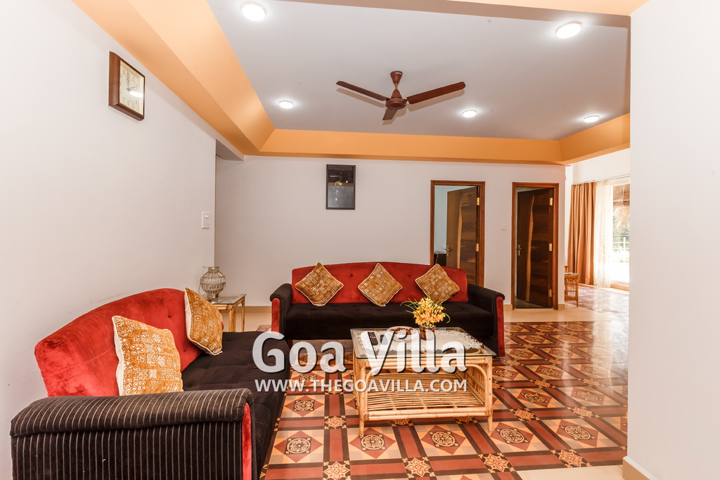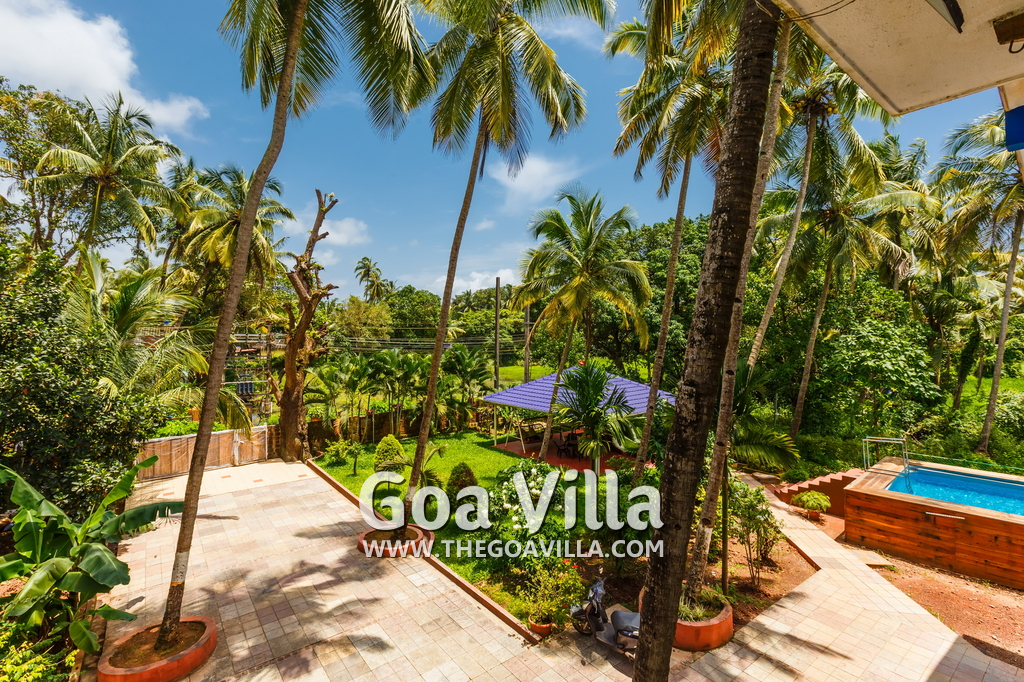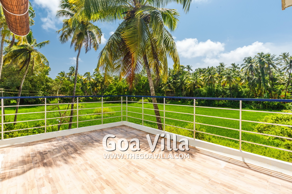 Villa is located at central Morjim, 1.4 kilometers from the beach. The immediate neighborhood of the villa is a rural community with many village houses, agriculture fields, and tall trees. There are a few churches and temples close. The Morjim fish market is also close.