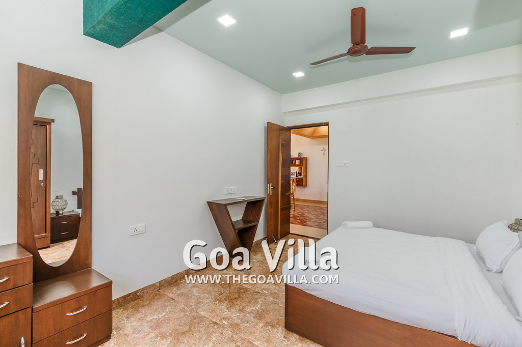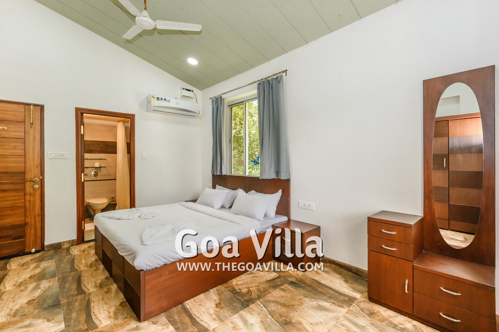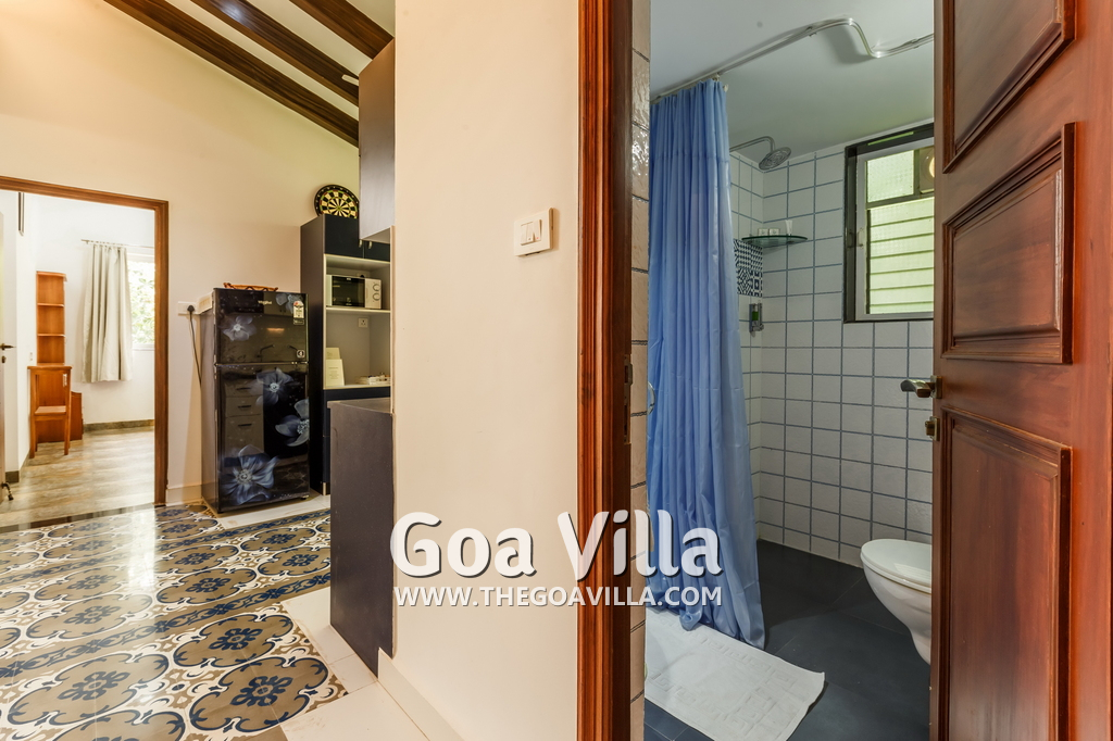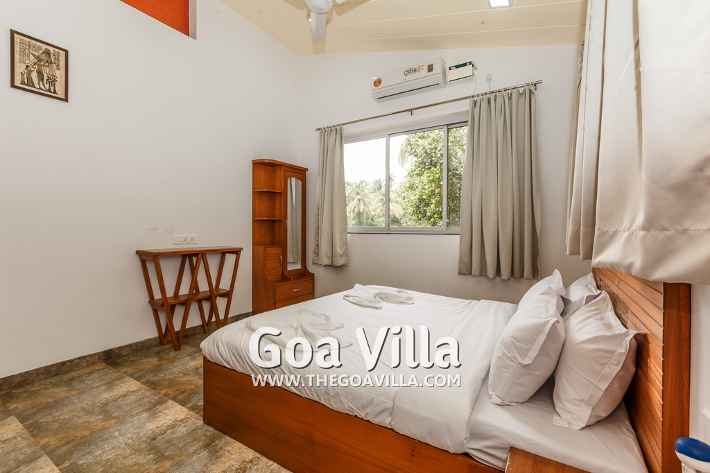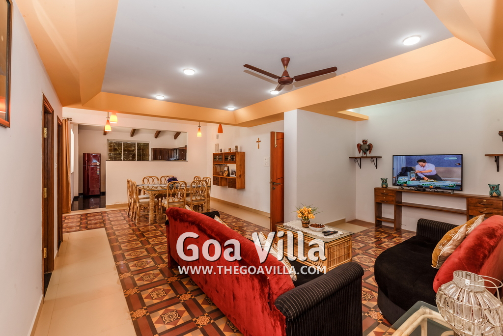 Villa is located at central Morjim, 1.4 kilometers from the beach. The immediate neighborhood of the villa is a rural community with many village houses, agriculture fields, and tall trees. There are a few churches and temples close. The Morjim fish market is also close.