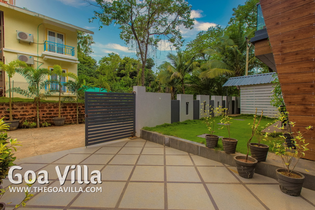 This modern, plush property is located at the end of a narrow lane with tall trees and lush greenery all around. Sophisticated residential colony. Just beyond the trees there are open fields and agriculture lands. You will have calm, peace, and complete privacy here. The beach is only 5 minutes away by car or motorcycle.