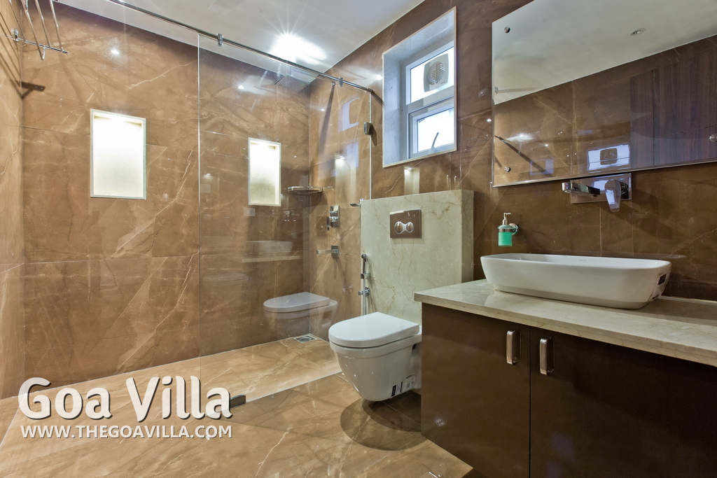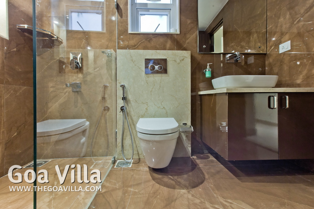 Bathrooms – They have imported tiles on the walls, modern faucets, and shower cubicles. Towels and toiletries are provided. There are two common bathrooms too apart from the 4 with the bedrooms.