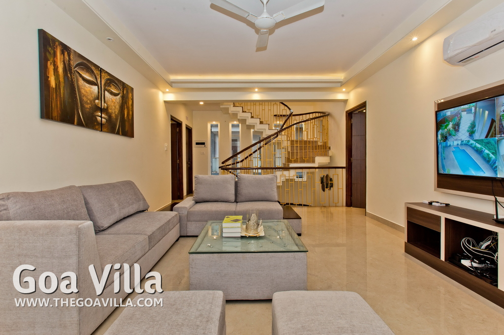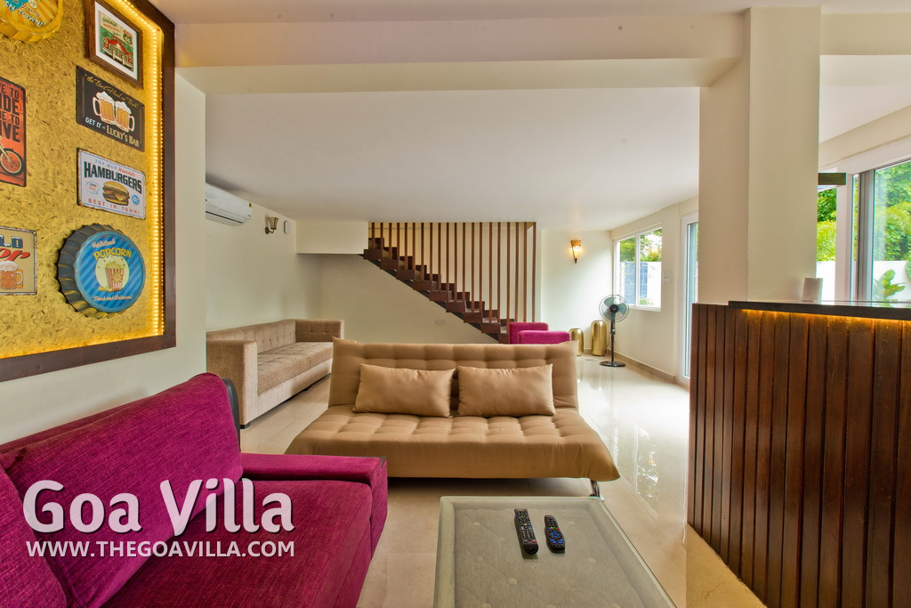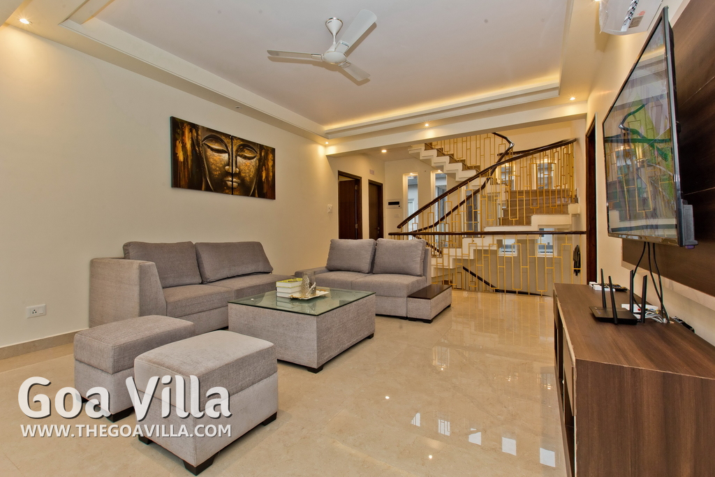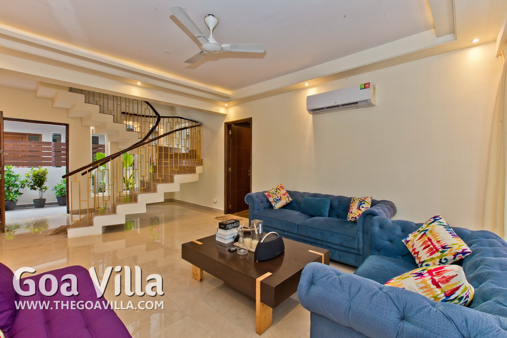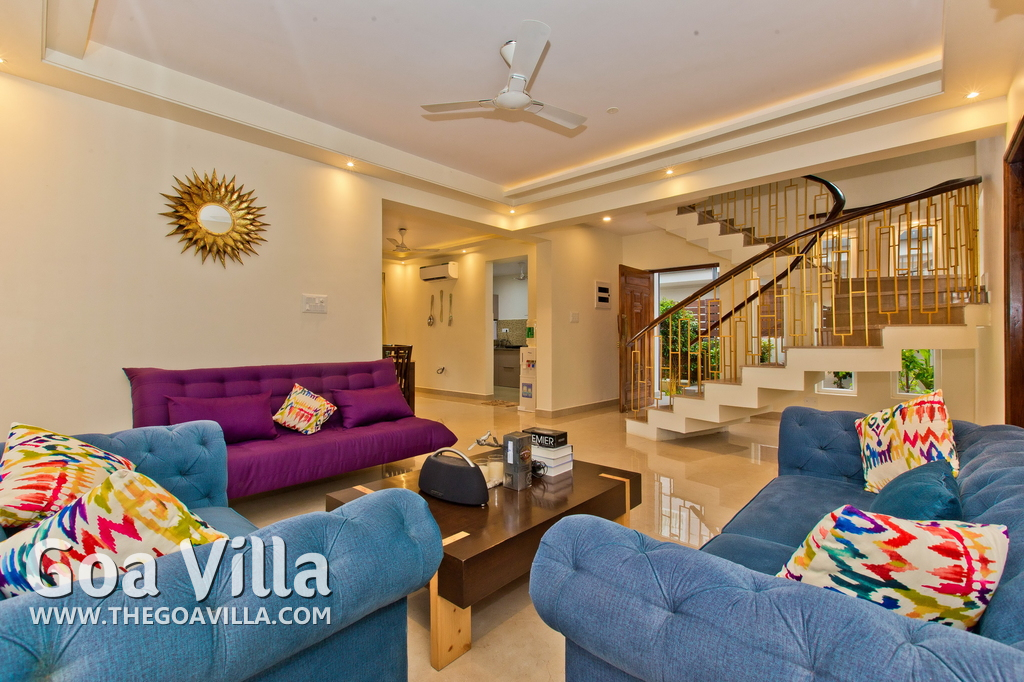 Modern private villa for rent in a top North Goa neighborhood. New construction in a sophisticated neighborhood. Plush interiors with aesthetic décor. This is a very good property for 4 families or a large group that wants to stay in a peaceful neighborhood.