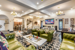 Living Area – The ground floor living space is large and spacious. There are several sofas with cushions for extra comfort and glass-top center tables. There is a flat-screen television, TV unit, audio player with speakers, and beautiful chandeliers. Staircase leads from one side to the first floor. This room is also air-conditioned. There is a common bathroom having the same decorations and amenities like the en-suite baths. Guests can use the fully-equipped bar in one side of the living room.