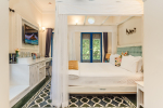Kitchen, Dining – There are 2 separate dining spaces here. One is semi-outdoors inside a glass dome with large windows all around. The second dining space is in one side of the kitchen below the staircase. You can also have food in the villa’s sun roof. The kitchen is fully-equipped with a water purifier, chimney, cooking station, sink, and toaster. Guests can have continental and à la carte breakfast in the morning.