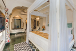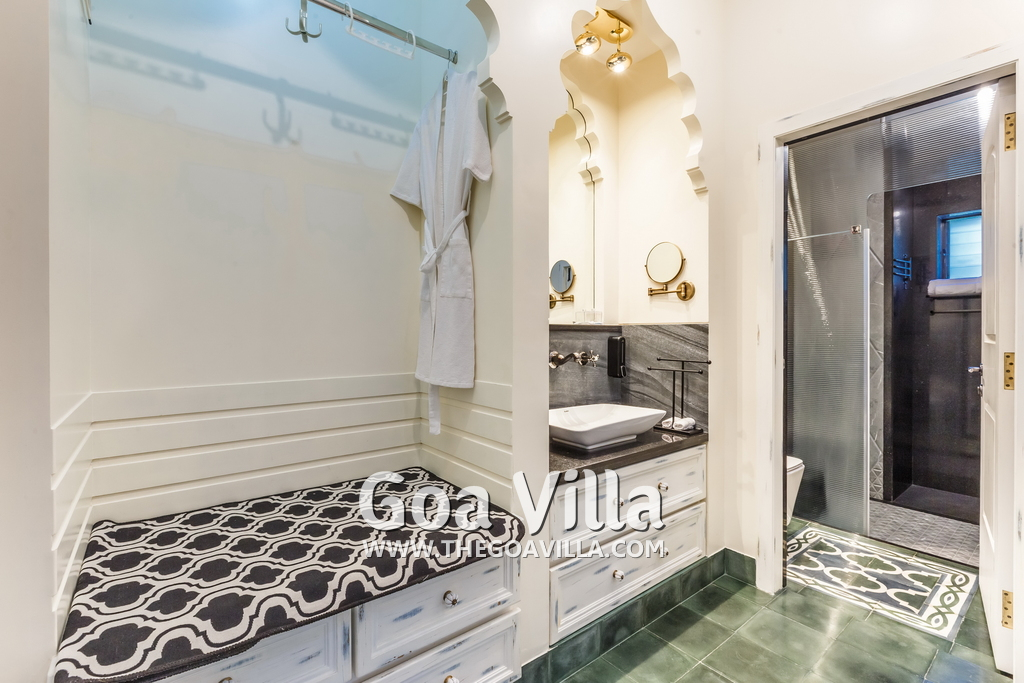Bedrooms – The villa has 5 air-conditioned bedrooms. 4 of them are en-suite. You will be impressed with the antique décor of each of these rooms. There is a large comfortable bed, side table, lamp shades, wardrobe, a sitting area, and a flat-screen television. Unique tiled flooring. Wall-to-wall window allows plenty of sunlight. There is a safe vault in all bedrooms where guests can keep their important belongings. There is also a gazebo with the master bedroom.