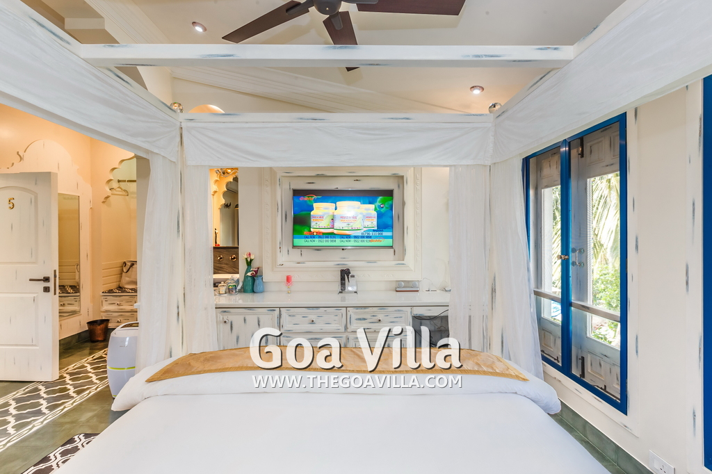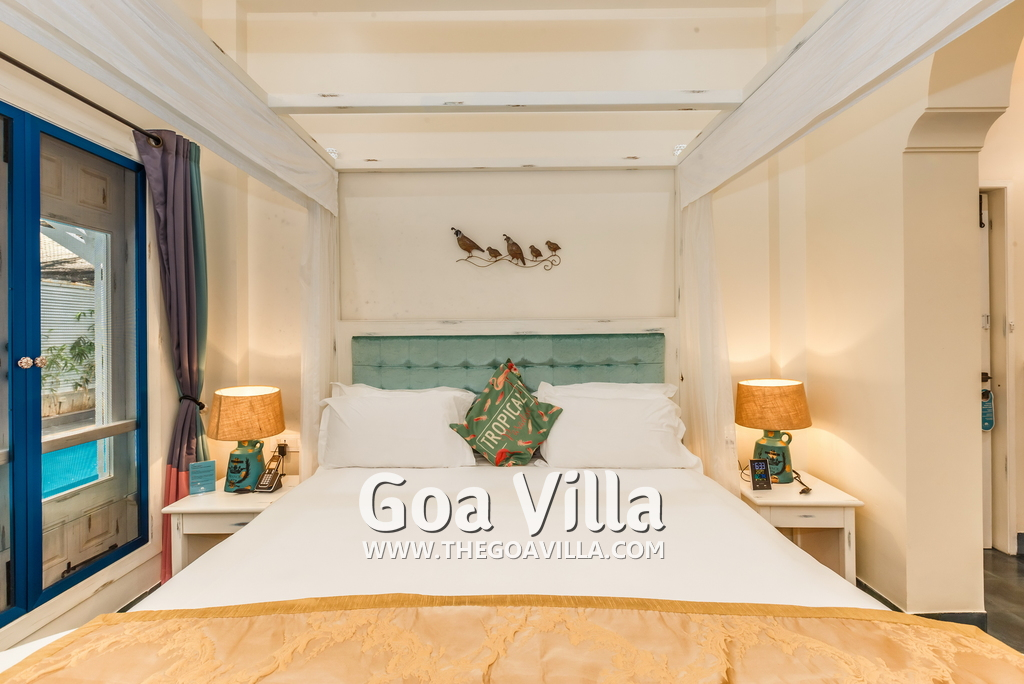 This luxury boutique villa is located at Candolim in North Goa. It is only a 3 to 4-minute walk from the beach. Candolim is an extremely popular neighborhood in Goa. The beach has everything – restaurants, bars, shacks, and plenty of water sports to choose from. Shops, super markets, massage parlors, tattoo shops, car/bike rentals, banks, ATMs are all close.
