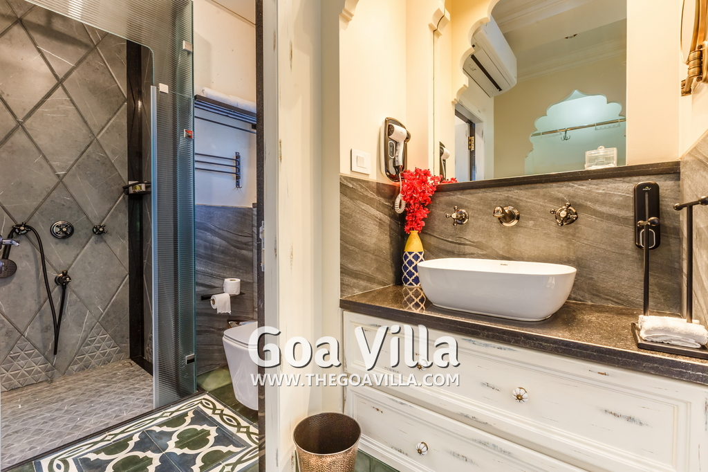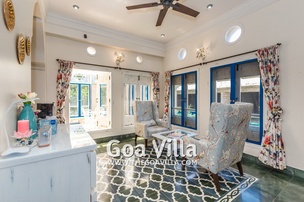 Traditional Portuguese-Goan villa with plush interiors. A beautiful boutique on rent with many indoor and outdoor objects of art. Many antique pieces are spread out throughout the house. 5 air-conditioned bedrooms. Beautiful landscaped garden. Private swimming pool. Rooftop terrace. Fully-equipped business center.