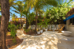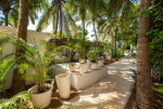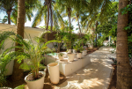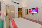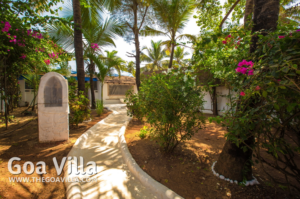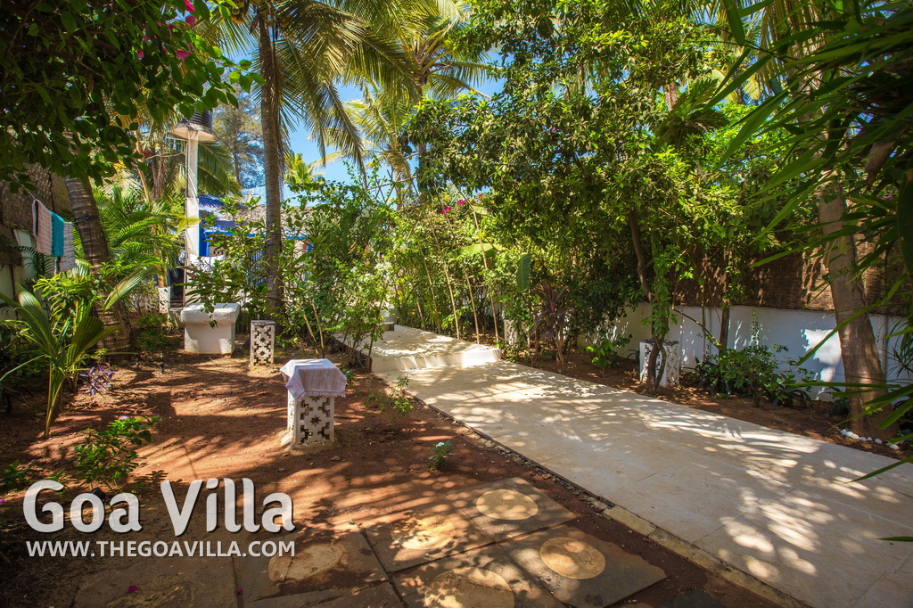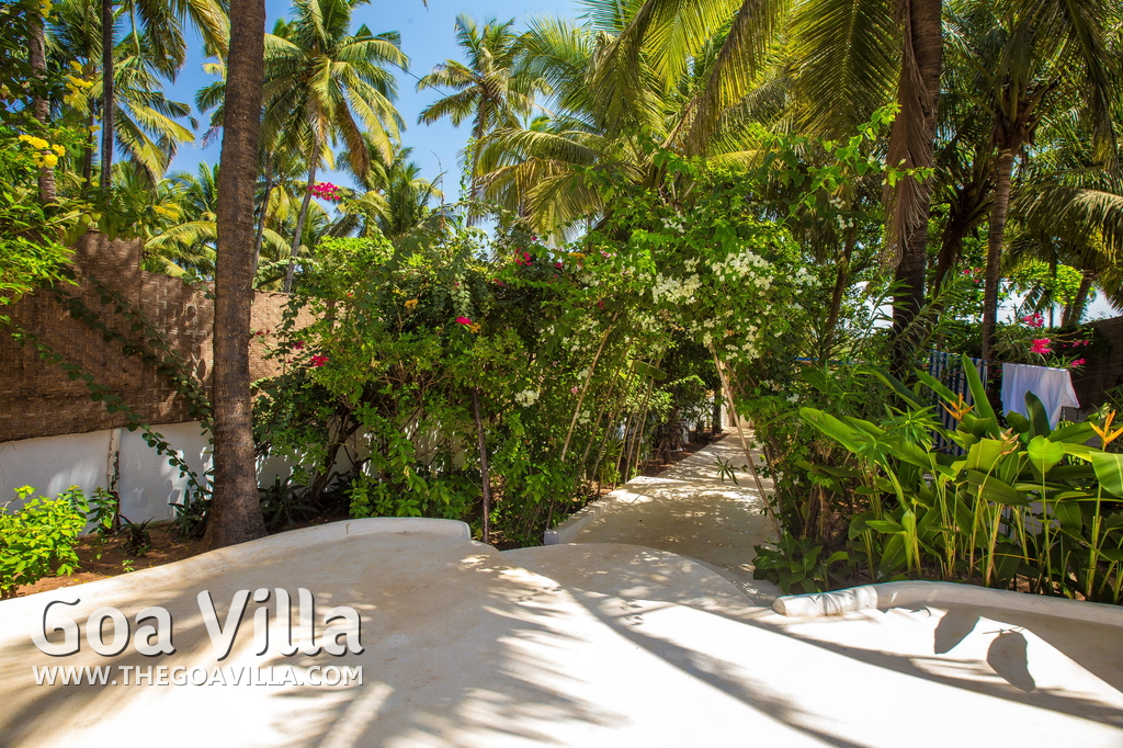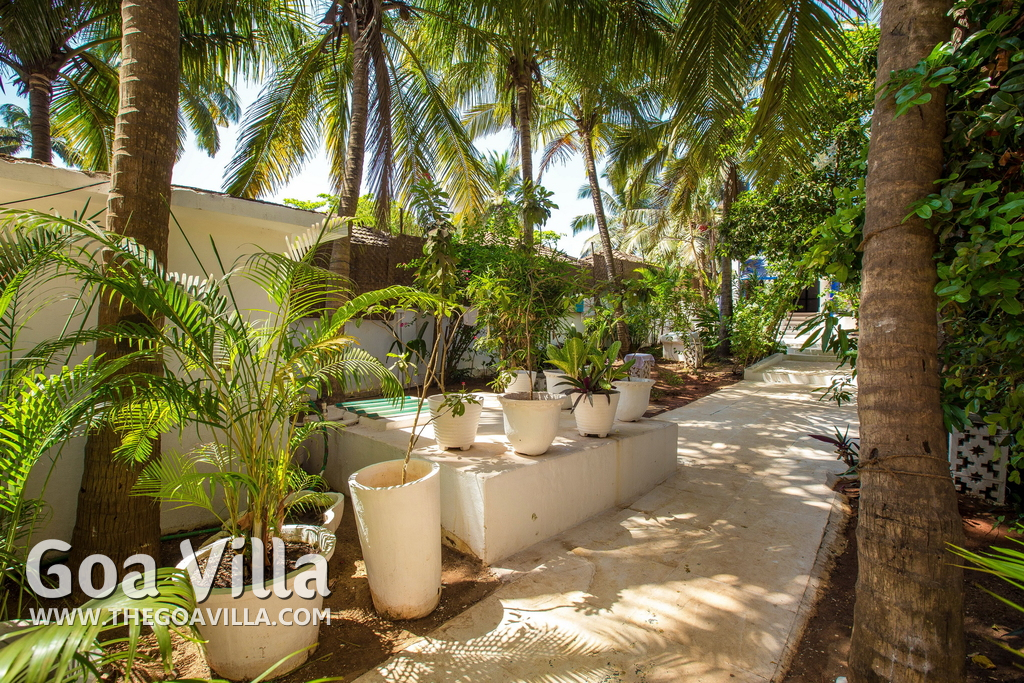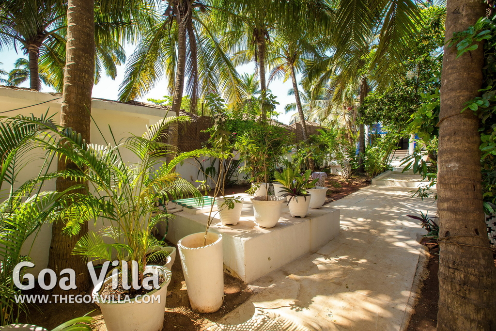 Anjuna is a top destination in North Goa. It was famous in the 1960s and the 1970s for hippie culture, but is now popular with backpackers from Europe and tourists who want a serene and laidback holiday. Beach House is right on the beach. Steps lead down to the sandy shore. You will find water sports activities and many beach shacks where you can also relax. But it never gets as crowded as some North Goa areas like Baga, Candolim, and Calangute. Many tall trees inside the property provide shade and a calm and quiet ambience.
