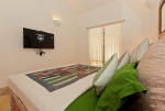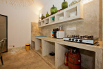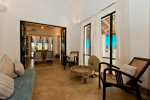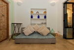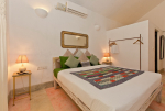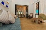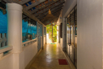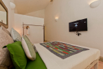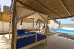 Bedrooms – Beach House has 2 bedrooms, both en-suite. They both have double beds with extra cushions for comfort, side tables, beautiful lamp shades, wardrobe, flat-screen television, and paintings on the wall. Both the bedrooms are air-conditioned. Modern furnishings. The outside sitting areas have artifacts for decoration. One extra person can sleep in the divan bed here.