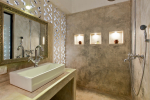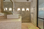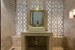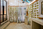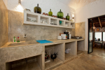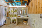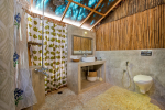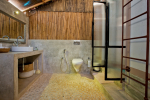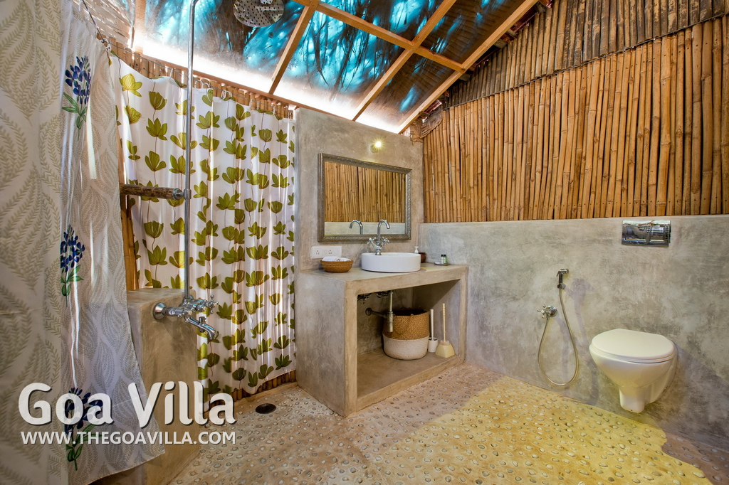 Bathrooms – The bathrooms have an earthen touch, which makes them unique. The ceiling is made of glass. You can see tall trees and the sky above. There is a sink and shower. Toiletries and towels are provided.