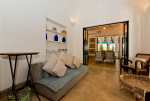 Beach House is a stunning 2-bedroom private villa for rent at Anjuna in North Goa. Right on the beach, this luxury Goa property has a private swimming pool overlooking the Arabian Sea, outdoor areas for relaxation, a well-equipped kitchen, living and dining areas, and a comfortable lounge. The 2 bedrooms are both en-suite. They have a lavish décor with modern furniture.