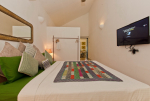 Kitchen, Dining – The kitchen is well-equipped with a microwave, oven, and toaster. The dining area is between the kitchen and living space. It has a rustic table with old-world finish. Sitting for 6 guests. All cookware, cutlery, and glassware is provided.