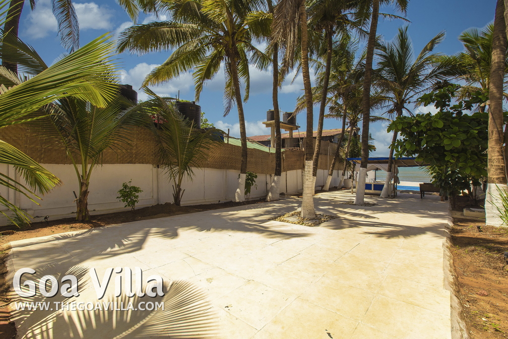 The Beach House villa for rent is located in Anjuna, a famous neighborhood in Goa. This is a serene and quiet area, one of the first places in Goa to achieve worldwide fame. It is a beachfront property. The beach has some rocky outcrops. Its red laterite rocks give the landscape a unique flavor. Many water sports activities.