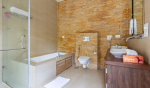 Bathrooms – All the bedrooms in Villa Budh are ensuite. They have impressive tiled walls, large mirrors, and showers. One has a bathtub. Towels and toiletries are provided.