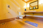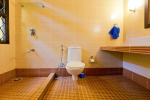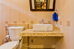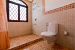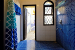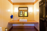 Bathrooms – The bathrooms have modern-day fittings, including faucets, a large mirror and an open-plan shower area where guests can have the unique experience of taking a bath outside under the stars. Toiletries, towels and pool towels are provided. Tiles match color of the rooms.