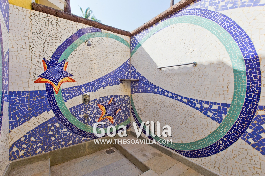 Casa Estrella is located at Candolim. This is a busy area where you will find many restaurants, bars, cafes, nightclubs, shops and supermarkets all around the property. Candolim is one of the most popular neighborhoods in Goa. Tourist infrastructure is well developed. The beach is only a 2-3 minutes’ walk from this villa for rent. It is behind a group of tall trees. You will find a range of water sports here and many sun beds. Calangute and Baga, also very popular, are 15 to 20 minutes by road.