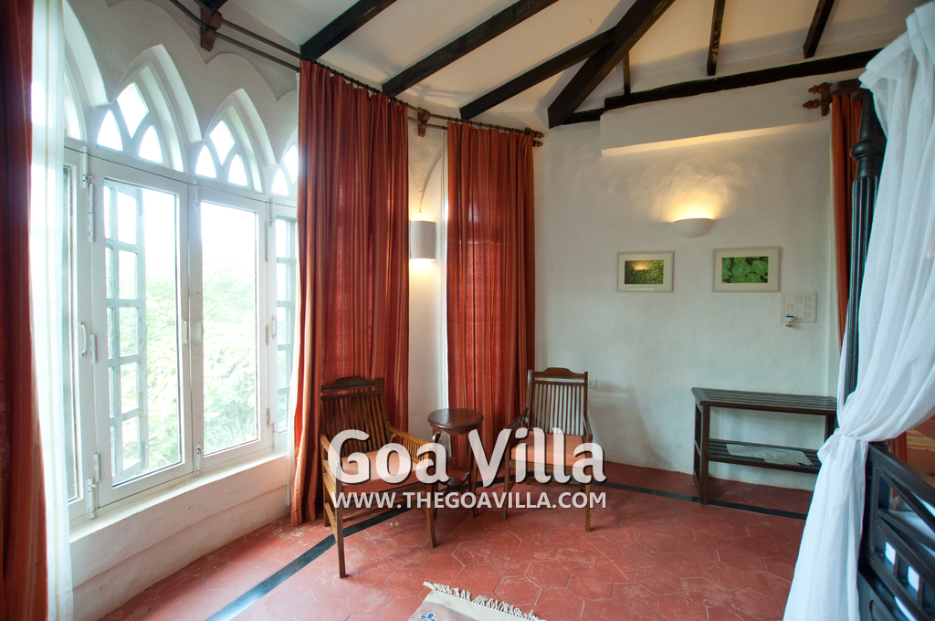 - The bedroom has high ceilings and lots of windows with access to garden, balcony and terrace providing a comfortable cool climate.