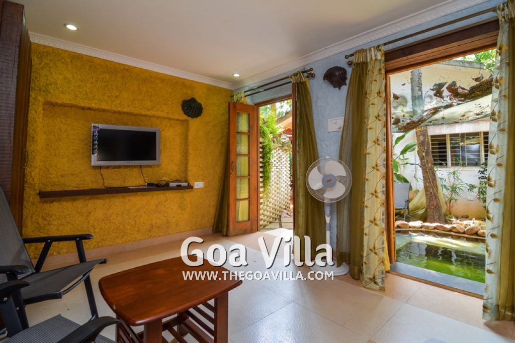 Private villa Cresa De Penha with 3 bedrooms and 3 bathrooms. Located in a distance from the road 2 km away from Baga beach. For 6 adults + 1-2 children. This villa is a perfect place for a company of good friends. It’s a quiet area, fairly distant from the noisy shore. The plants and trees create comfortable atmosphere.