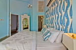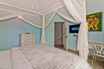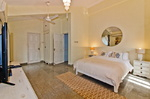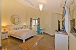 Bedrooms – All 4 bedrooms are en suite. Bedrooms have distinct light shades. Antique Indian furniture. King or queen bed, carpet, wardrobe, side table, wall-mounted TV, balcony, lamp shade, air-conditioning.