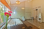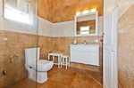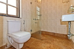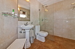 Bathrooms – Huge bathrooms with modern faucets. Towel rack, toiletries, shower cubicle, tiled walls.