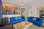 Modern villa for a luxury holiday. Air conditioning, living and dining area, fully equipped kitchen, balcony overlooking the sea and river, swimming pool, garden, television, DVD, refrigerator, water purifier, toaster, blender.