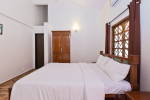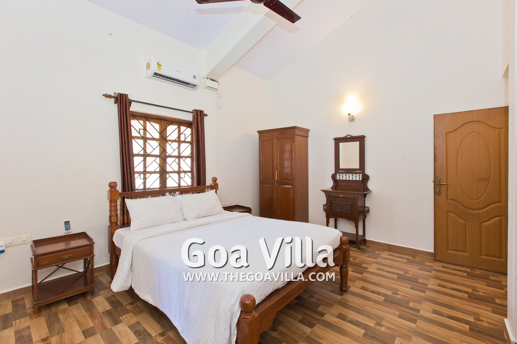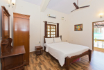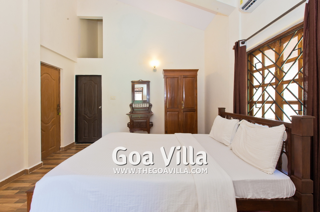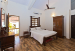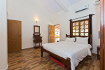 Goan House is located in a quiet and green neighborhood. It is very close to a small hill and the Chapora River. Several beaches are an easy drive away. Morjim beach is just across the river. This is a good villa in Goa for families, couples, honeymooners, and those who want close to nature and prefer a quiet vacation. Goan House can accommodate up to 10-15 people in the 5 bedrooms.