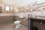 Bathrooms – Modern bathroom with large sink, shower cubicle. Towels are provided.