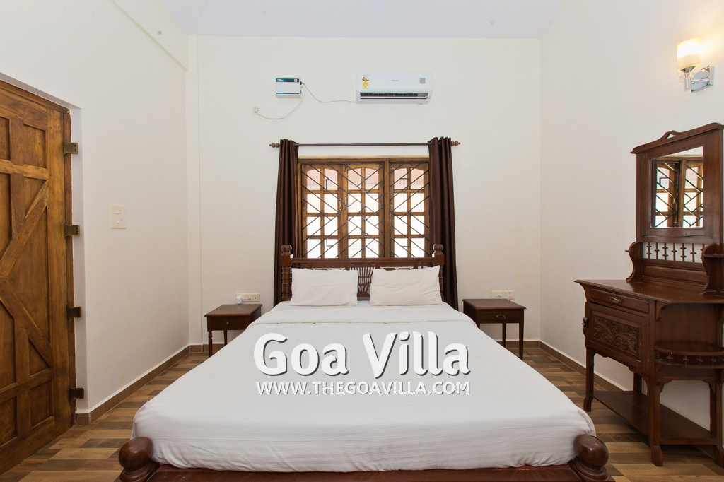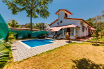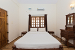 Goan House is a 5-bedroom villa at Vagator in North Goa. Luxury, Portuguese style construction with a private swimming pool. It is just 1.51 kilometers from the Chapora beach, and 2.29 kilometers away from the Vagator beach. Both Chapora Fort and the river are very close. All bedrooms in this villa are air-conditioned and en-suite. The private swimming pool has a shallow end for kids. Outdoor seating. Comfortable rooms with modern amenities and antique furniture.