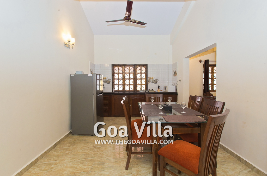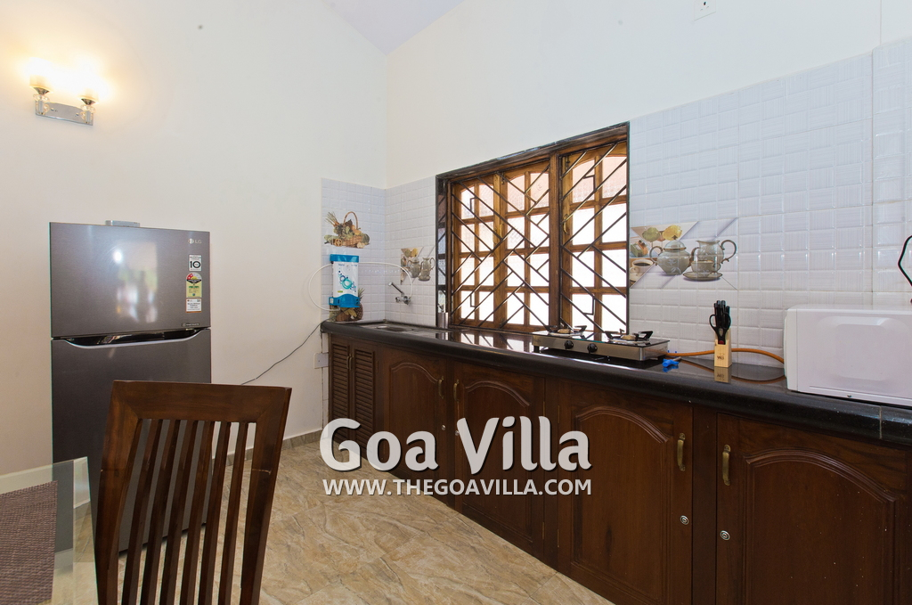 Kitchen – Goan House has a fully equipped kitchen with a large refrigerator, microwave, cooking station, and water purifier. Utensils are provided. Chef or cooking maid service available between 8 AM and 8 PM. Guests can cook their own food too.