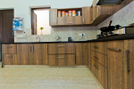 The kitchen is large with multiple kitchen cabinets, refrigerator, microwave and all modern amenities.