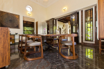 The villa comprises of a large living room on the basement level, air-conditioned and furnished with luxurious colonial furniture and tasteful décor. The room has large French windows that leads onto a patio with potted ornamental plants. Besides a DVD player there is a book library.