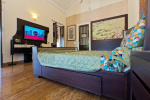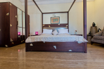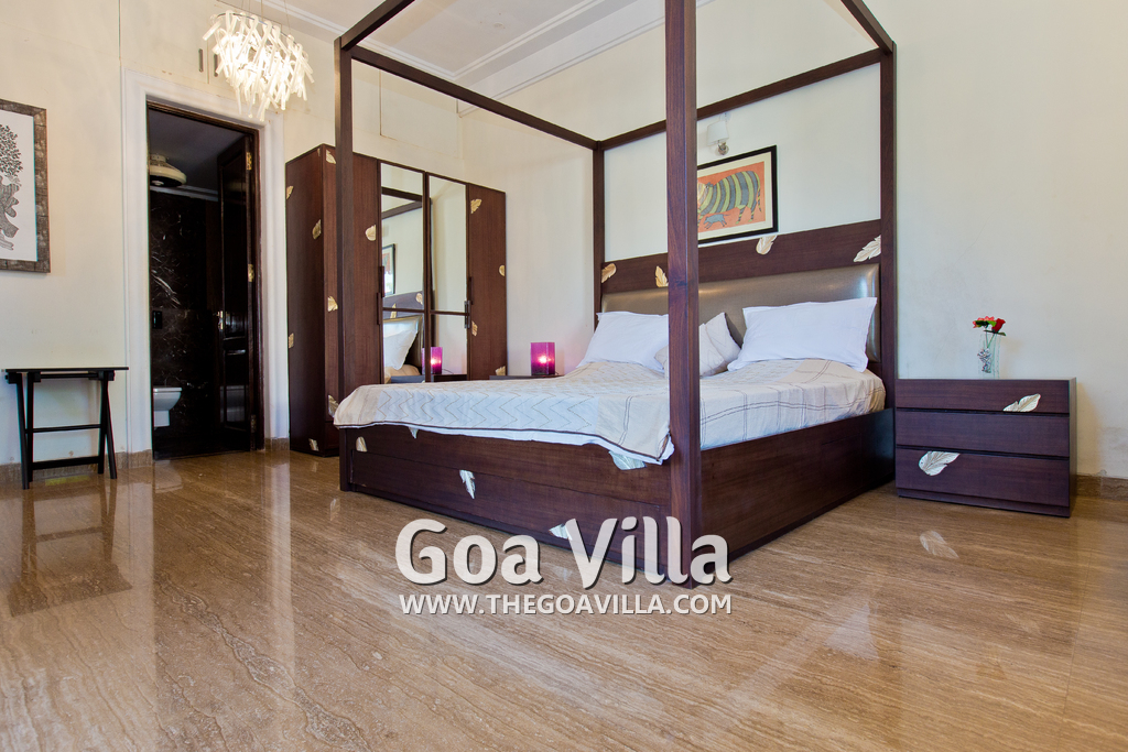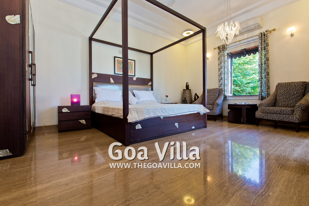 The master bedroom is on the first floor and has been lavishly furnished with a king sized bed, air conditioning, antique furniture, DVD player and a T.V.