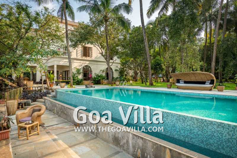 Villa Serene Mansion has one of the best locations in North Goa. It is close to a major beach but away from the crowds. The house is perfect for a large group.