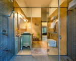 Bedrooms – Villa Serene Mansion is spread over two floors, offering ample space even for a large group of 16 guests. The ground-floor bedrooms provide easy access to the villa’s impressive grounds. Those on the upper floor offer better views of the surrounding greenery and river. Each bedroom has a large double bed with high-quality linen and soft mattresses. There are bedside tables, seating areas, rugs on the floor, wardrobes, televisions, and mirrors. Large windows provide natural ventilation.