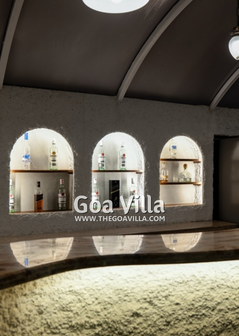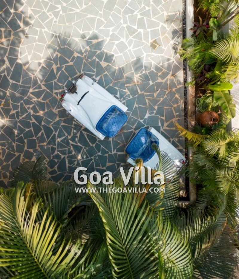 Swimming Pool – You will have your own private pool when you stay in this North Goa villa for rent. It is a beautiful pool with a poolside terrace, having many chairs, tables, and tables where you can relax and have a drink. The terrace also has a garden and an antique car that has been wonderfully transformed into a seating area.