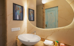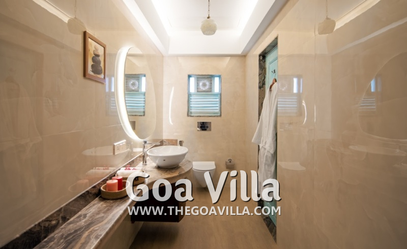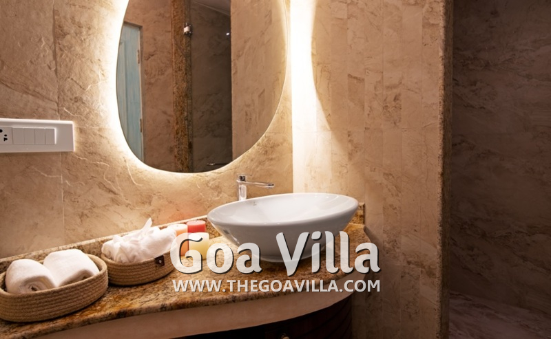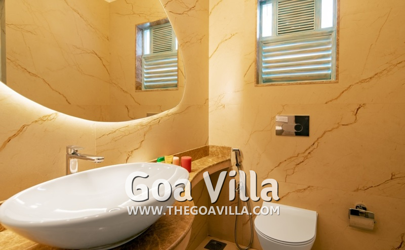 Bathrooms – All the 10 bedrooms in the house has ensuite bathrooms, all with bathtubs. They have beautiful marbled walls, huge mirrors, and modern washbasins. The lighting arrangement is unique. Towels, toiletries, and bathrobes are provided.