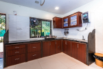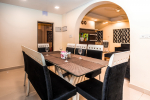 Kitchen, Dining – Fully equipped kitchen with refrigerator, oven, water purifier, and utensils. The dining area is between the living space and kitchen. The glass top table has sitting for 8 guests. There is chef service. Guests can also cook their own meals.