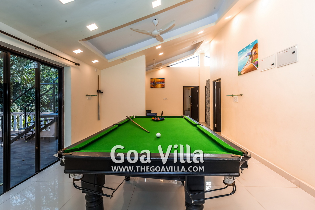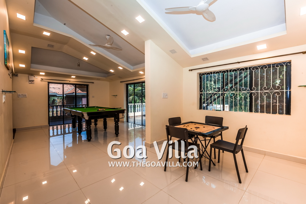 Games Room – This is on the first floor beside the terrace. There is a billiards table here. The villa also has a carrom board.